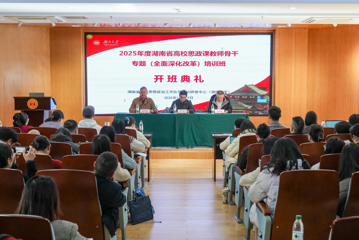11月18日至11月21日,2025年度湖南省思政课教师骨干专题(全面深化改革)培训班在湖南大学举行。此次培训由中共湖南省委教育工委、湖南省教育厅主办,湖南省高校思想政治工作队伍培训研修中心(湖南大学)承办。来自全省高校的116名思政课骨干教师齐聚岳麓山脚参加了此次培训。
