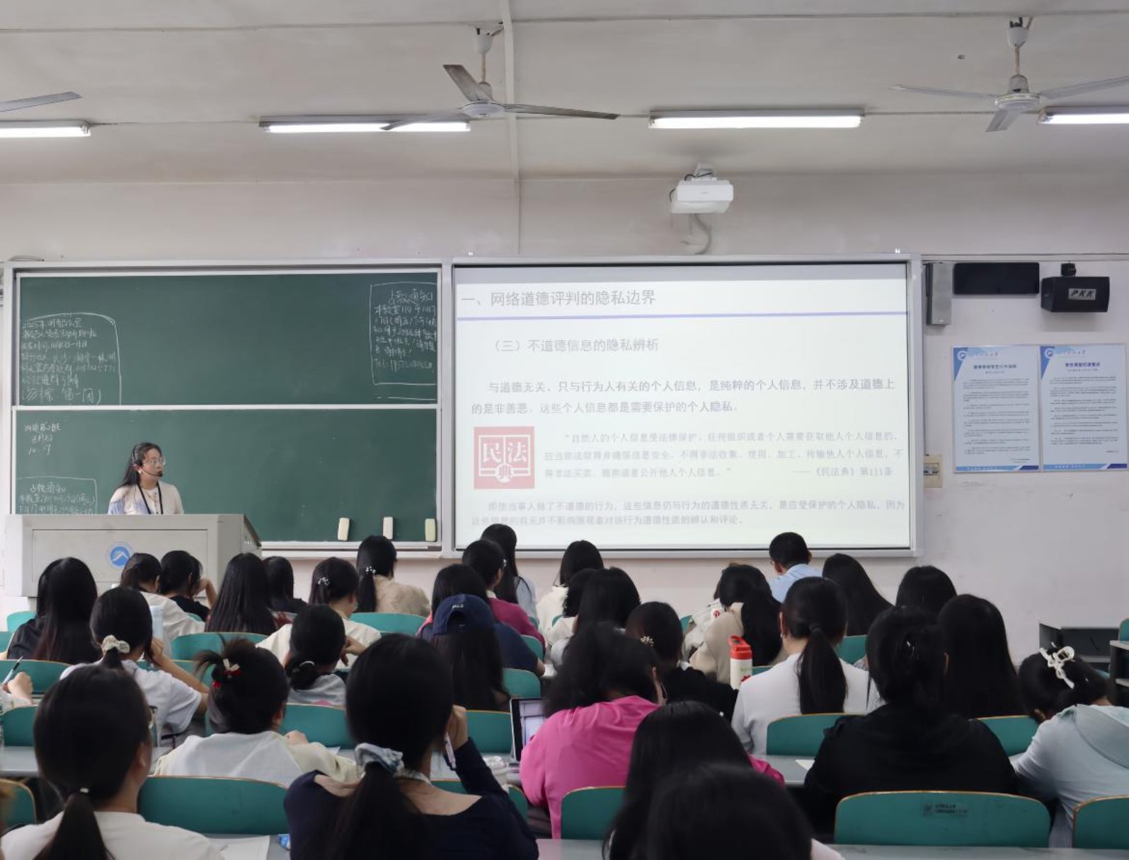 10月17日下午,湖南科技大学课程思政示范课第九十六讲在九教110开讲。本场示范课由马克思主义学院承办,吕幸星博士主讲,授课课程为《网络思想政治教育》,授课主题为“网络道德评判的合理边界”。马克思主义学院及其他学院教师代表、思政专业部分同学参加了本次活动。