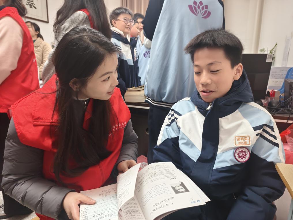 自挂职辅导员活动启动以来,宣讲团的成员们始终以饱满的热情和专业的素养,积极投身于建元中学的教育教学实践中。“薪火湘传”宣讲团的成员们以亦师亦友的身份,深入班级与学生面对面交流。通过一对一谈心、小组互动等形式,他们关注学生的情绪变化与心理需求,平均每周进行10余次一对一谈心,帮助缓解学业压力、疏导成长困惑,成为许多学生信任的“知心哥哥姐姐”。据一项匿名问卷调查,超过90%的学生表示,与大哥哥大姐姐们的交流,让他们感受到了被理解和支持,学习和生活也变得更有动力。除了心理关怀,宣讲团成员还结合自身学习经验,开展有针对性地学业辅导。他们不局限于知识讲解,更注重学习方法的传授与学习动力的激发,巧妙将理想信念教育融入日常辅导,引导学生理解学习的意义,树立积极向上的学习态度。在半年的辅导中,约有70%的学生反馈学习积极性有所提高。