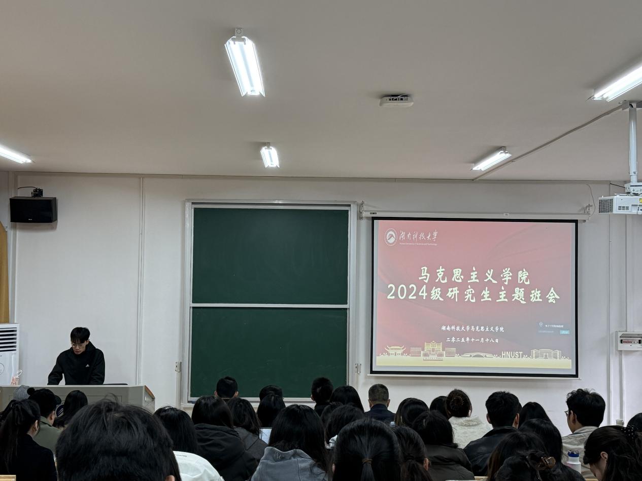 为铭记抗战历史,传承红色基因,厚植青年学子家国情怀,马克思主义学院2024级硕士研究生于2025年11月18日在雨湖校区二教102教室召开“弘扬伟大抗战精神,推进民族复兴伟业”主题班会。宋劲松,黄利新,谢忠,黄兆慧、许浩、谭思程六位老师与会。