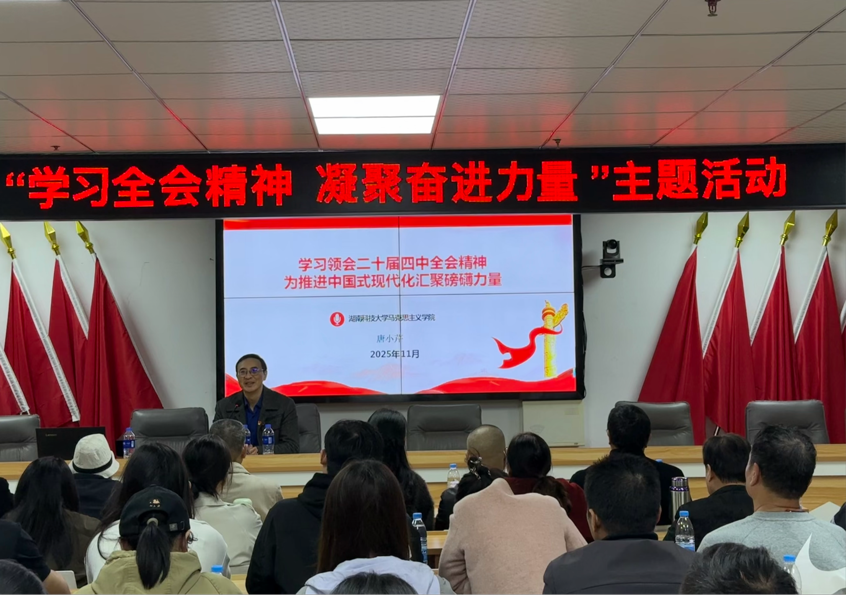 领学结束后,唐小芹以专题党课深化学习成效,结合二十届四中全会公报核心要义,从十五五时期的战略定位、主要目标出发,联系校社党建实际,系统讲解了党员如何在民生服务、文化建设、基层治理中践行坚持人民至上原则,发挥先锋模范作用,为在场党员明晰了学精神、践行动的实践路径。