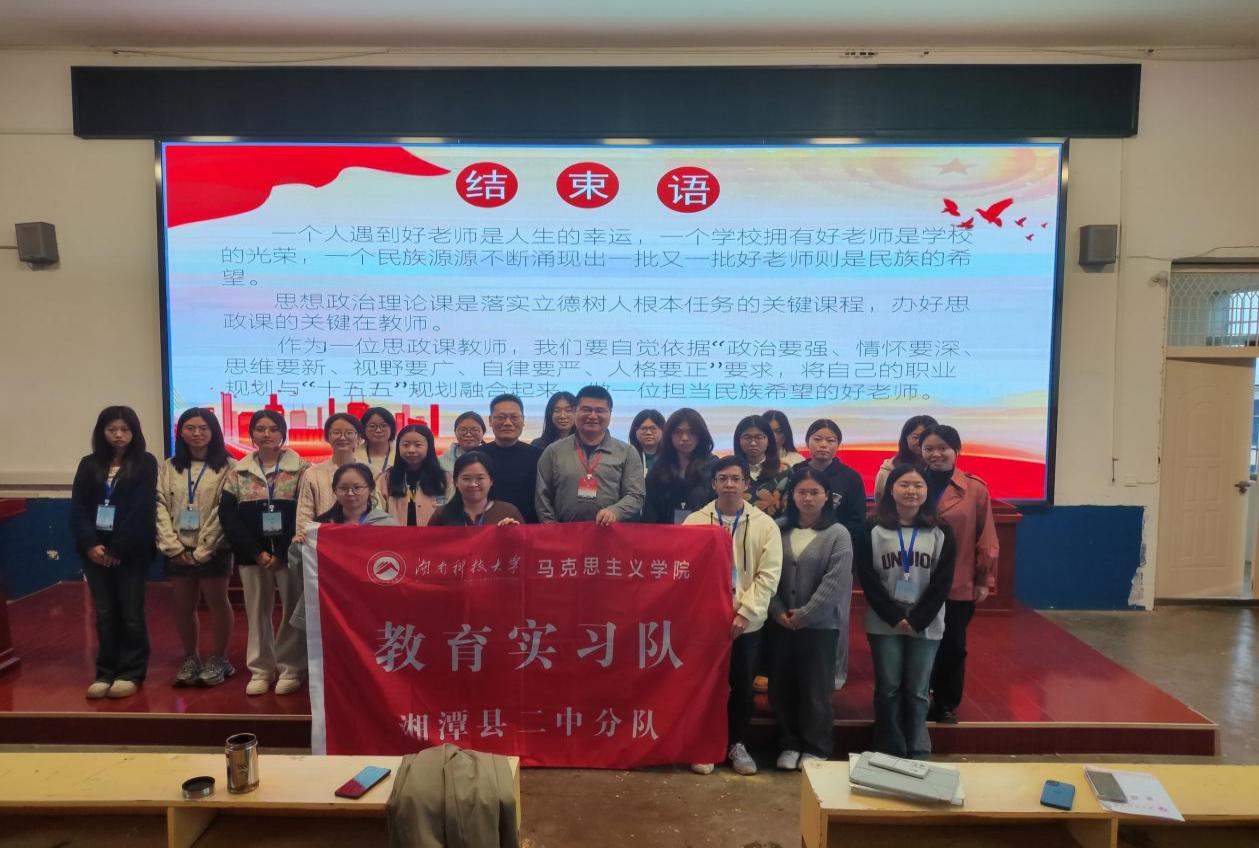 为深入学习并领会习近平总书记关于教育强国的重要论述,强化教师队伍建设的时代使命,10月29日,湖南科技大学马克思主义学院湘潭县二中实习队成功举办第六十期思政大讲堂。活动特邀该校教务主任、湖南科技大学优秀校友谷立军,以《做一名担当民族希望的好老师》为主题,为全体实习教师作了兼具理论深度与实践价值的专题报告,活动由实习队带队老师龚超博士主持。