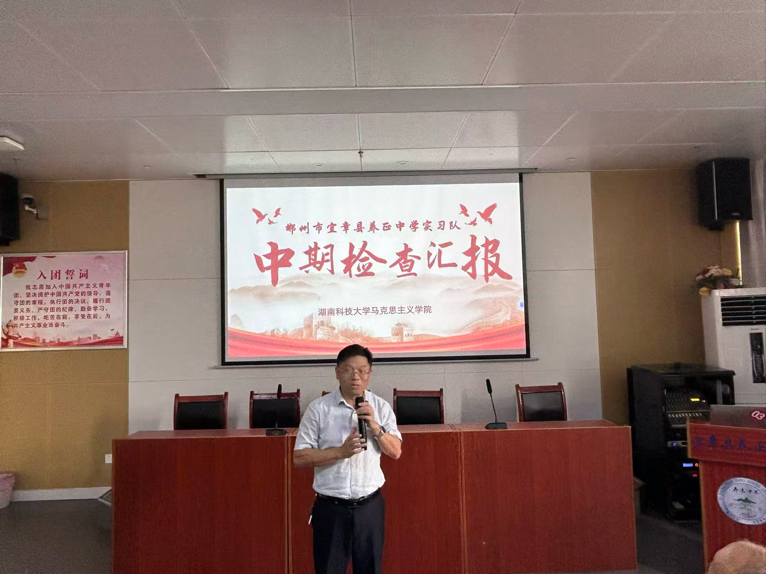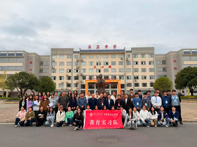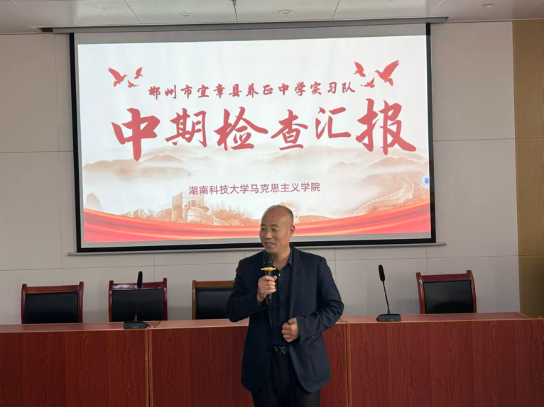 2025年11月7日,我院领导与教师代表赴宜章县养正中学进行教育实习中期检查,实习工作汇报会在正心楼举行。湖南科技大学马克思主义学院党委副书记刘图其、唐佳海博士、熊耀林博士、邹昕老师,与宜章县养正中学校长胡耀平、纪委书记刘辉,以及实习带队老师罗建文教授、关洁博士、部分实习指导老师和全体实习队成员共同参加。