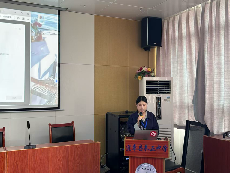汇报会以视频形式全方位回顾展示了9月22日以来实习队在养正中学的工作、学习和生活,实习队队长杨盈莹代表实习队汇报实习工作。在实习期间,队员们通过听课学习优秀教师教学经验、参与政治组备课评课及专题讲座,经充分备课与试讲后顺利走上讲台授课;同时承担高一实习班主任职责,负责早读、自习管理及查寝等日常工作,此外实习队组织开展了参观湘南年关暴动纪念馆和邓中夏故居,以红色文化丰富思政课教学的社会实践活动。杨队长代表全体队员对养正中学提供的宿舍、餐饮等生活保障,以及校领导与指导教师在教学上的悉心指导表达了诚挚感谢,并明确表示将坚守投身教育行业的初心,以更严谨、负责的态度推进后续的实习工作。