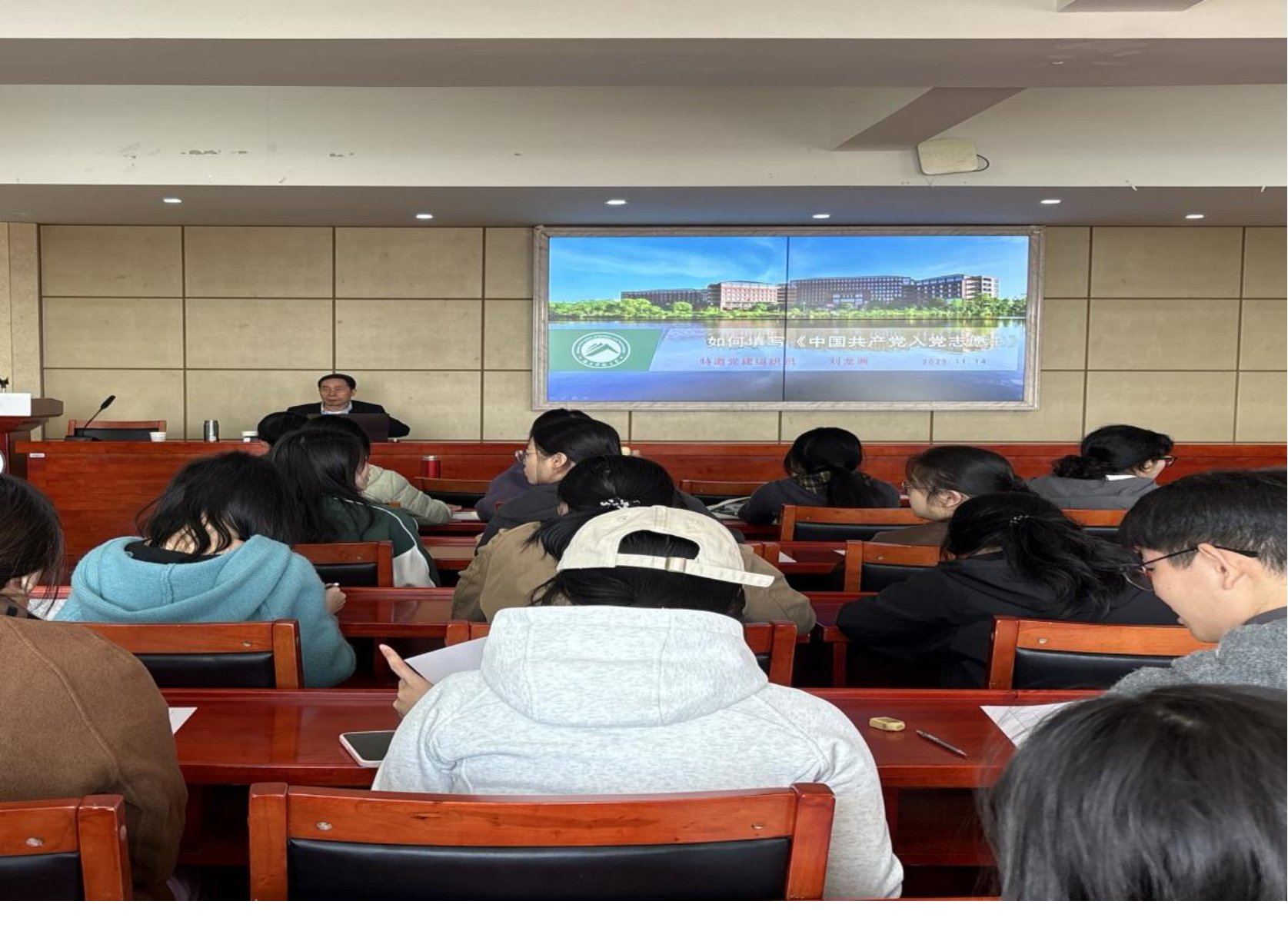 为规范党员发展程序,切实做好入党志愿书等材料填写工作,推动学院党建工作规范化、标准化、实现高质量发展,11月14日,我院在立言楼A5-1召开《入党志愿书》填写指导培训会。此次培训由学校特邀党建组织员、原组织部部长刘龙洲教授主讲,学院组织员刘美玲主持。学院2025年下半年发展对象、各学生党支部副书记及学生党建办公室成员参会。