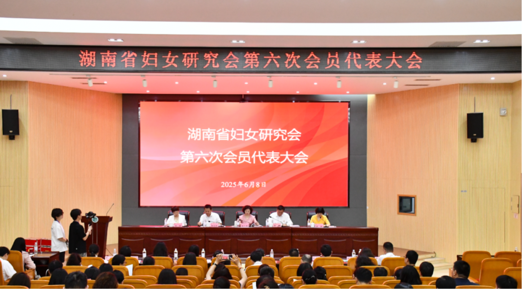 6月8日,湖南省妇女研究会第六次会员代表大会在长沙召开。长沙师范学院党委书记胡穗致欢迎词,省社科联党组成员、副主席黄云志出席并讲话,省妇联党组成员、副主席黄蕴主持会议。大会宣读了省民政厅关于同意湖南省妇女研究会换届的批复,选举产生了湖南省妇女研究会第六届理事会。来自省内各高校、科研院所的110余名省妇女研究会会员代表参加会议。我院副院长黄爱英参加了会议,廖和平教授、黄爱英教授当选为新一届理事。