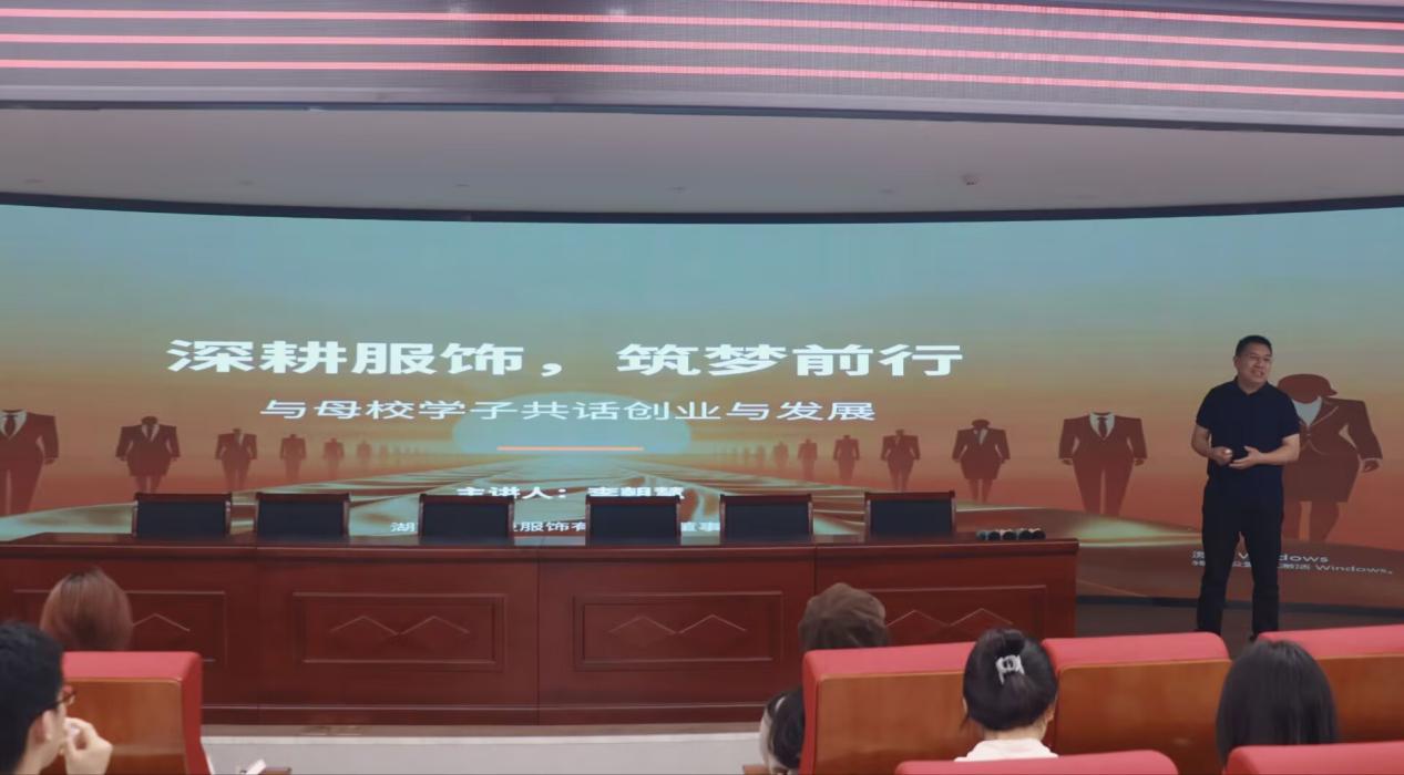 会议伊始,刘图其向同学们介绍李朝慧。随后,李朝慧结合十八年创业经历,分享了从求学、职场到2008年投身服饰行业的奋斗历程。同时,他结合当下创业环境,向同学们提出深耕领域、夯实基础、勇于实践、坚守初心的四点建议,鼓励大家找准赛道、脚踏实地走好创业之路。